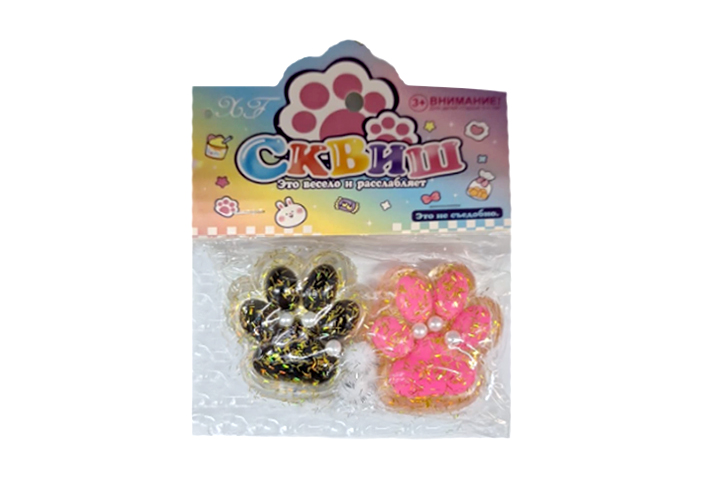 Антистресс арт. JJ276-209 Лапка прозр конфетти,бусины набор 2 шт. мальтоза (20 шт.) в пак.