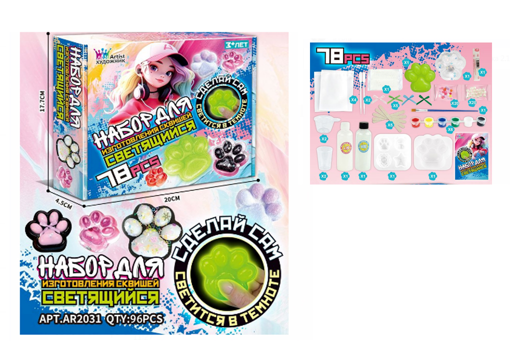 Антистресс арт. AR2031-805 Набор "Сделай лапку сам" 78 предм. свет. в кор._